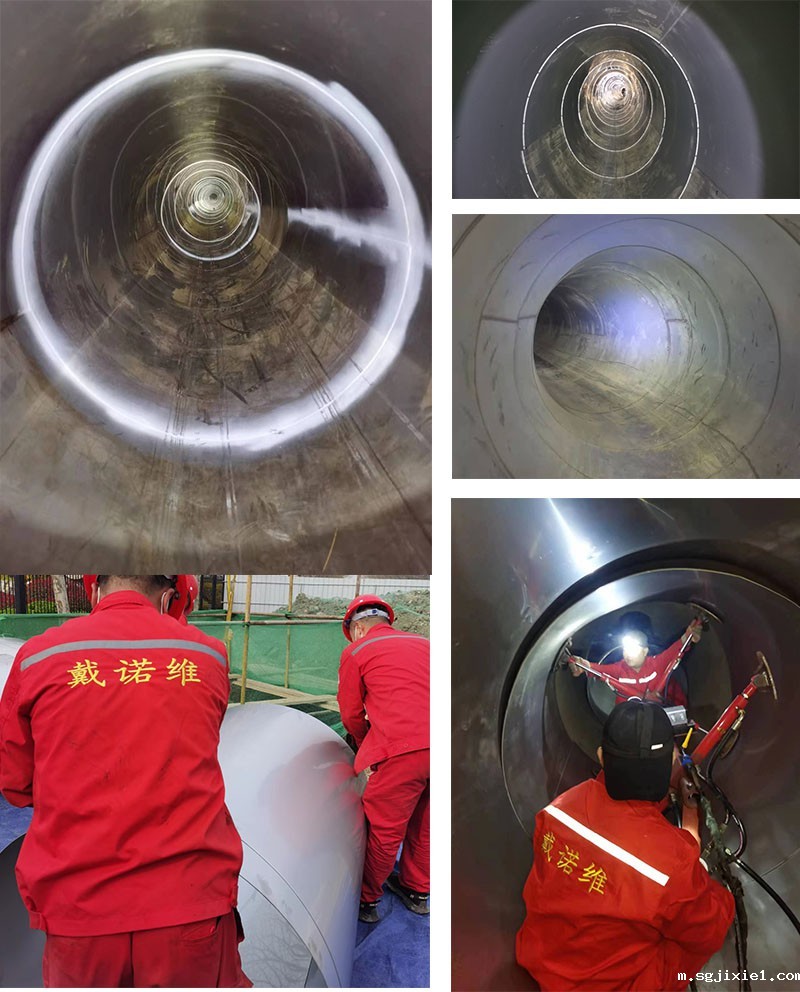 管道内衬不锈钢工艺是在旧管道内部穿插内衬薄壁不锈钢管,或将不锈钢板采用卷板形式在管道内部进行焊接,整体成型,形成原钢管与不锈钢内衬管相结合的“管中管”结构。从而达到提高承压、耐腐蚀、延长原管道使用寿命的修复目的。